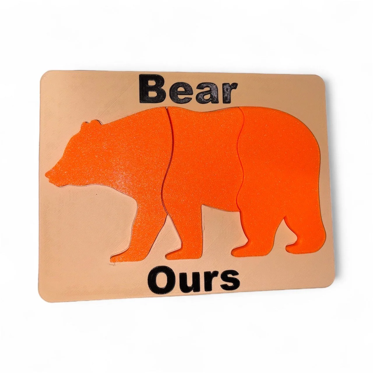 Each puzzle features the English and French words for bear - Bear/Ours - helping children begin to recognize and appreciate multiple languages while engaging their fine motor skills.