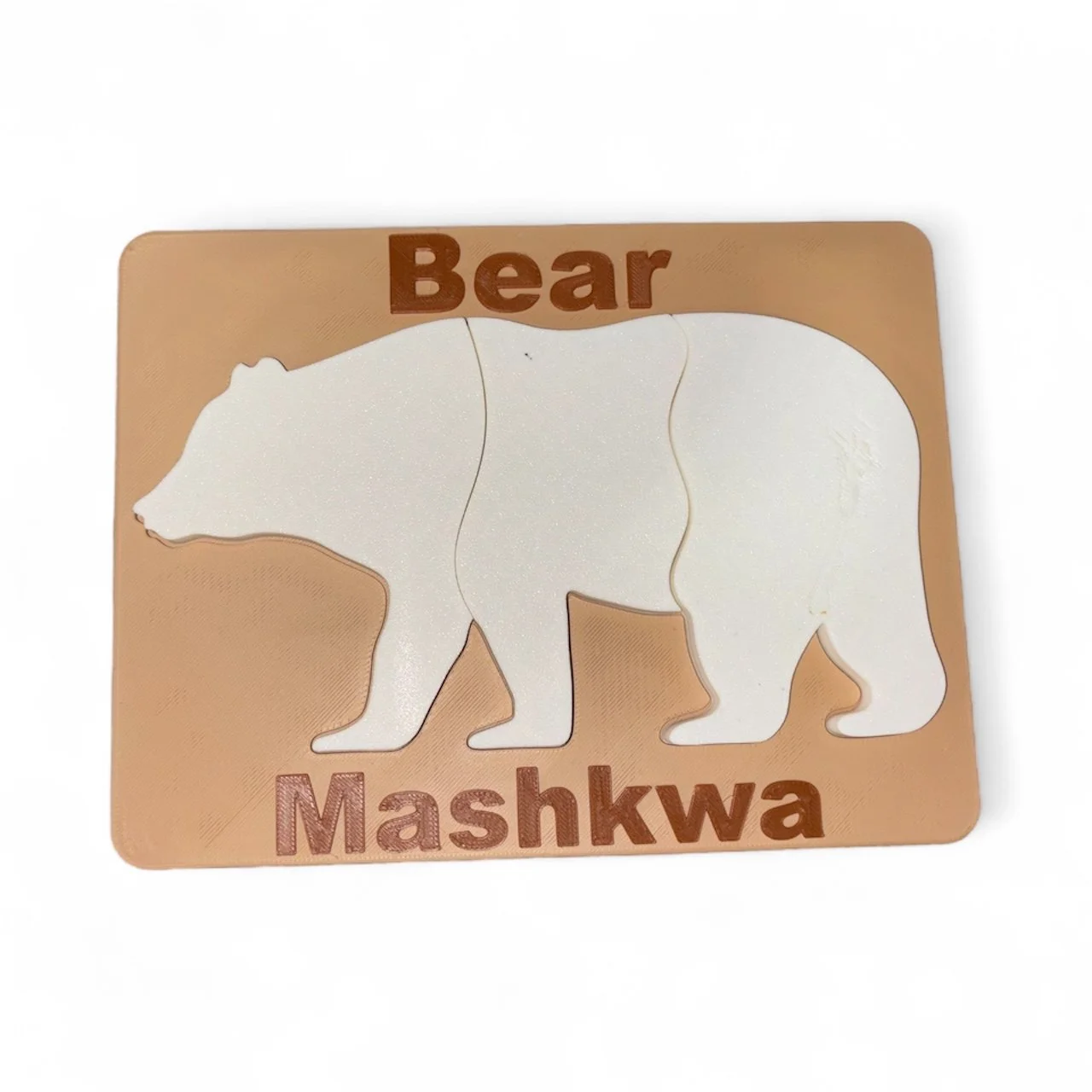 Each puzzle features the English and Cree words for bear - Bear/Mashkwa - helping children begin to recognize and appreciate multiple languages while engaging their fine motor skills.