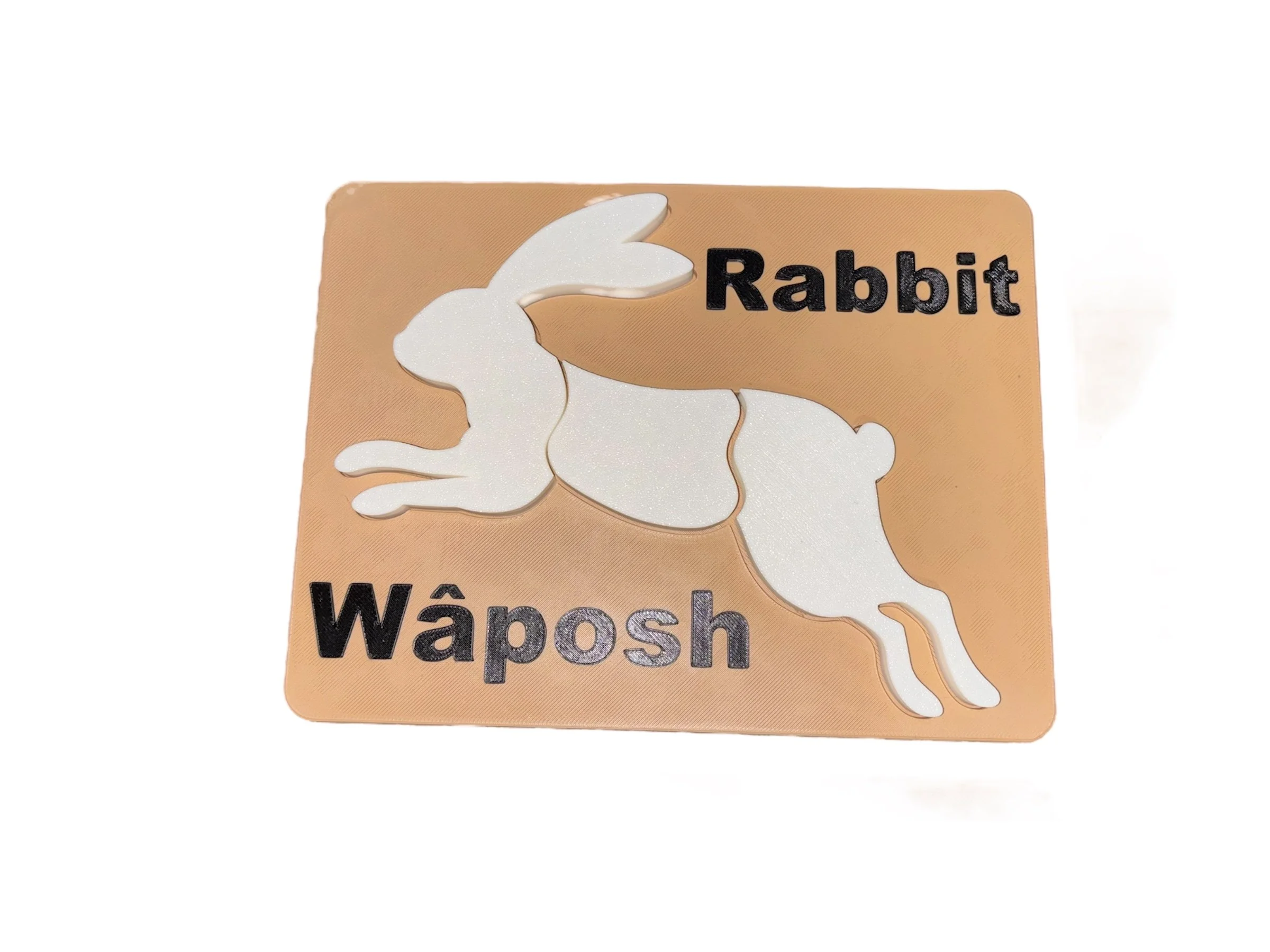 Each puzzle features the English and Cree words for rabbit - Rabbit/Waposh - helping children begin to recognize and appreciate multiple languages while engaging their fine motor skills.