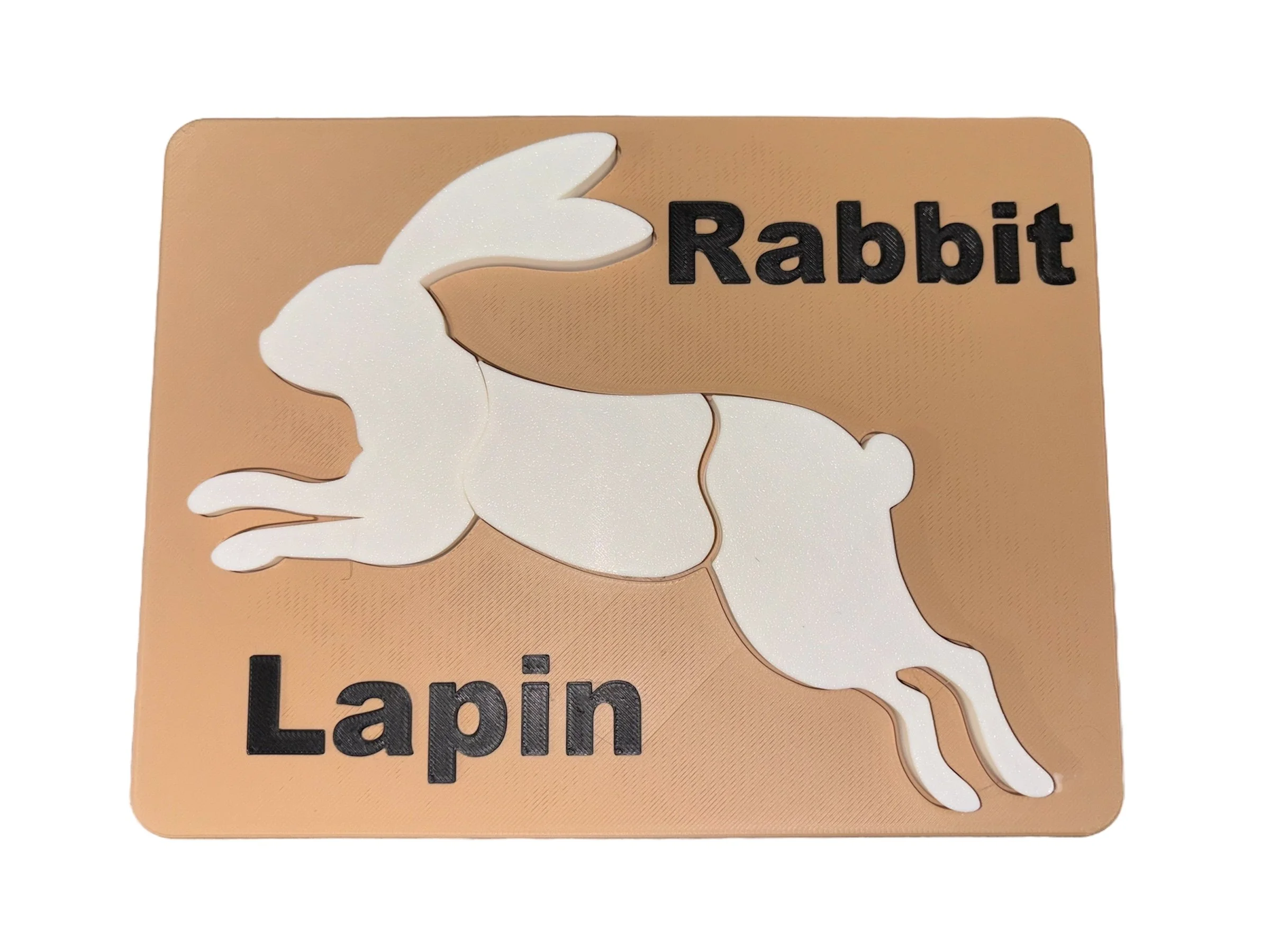 Each puzzle features the English and French words for rabbit - Rabbit/Lapin - helping children begin to recognize and appreciate multiple languages while engaging their fine motor skills.